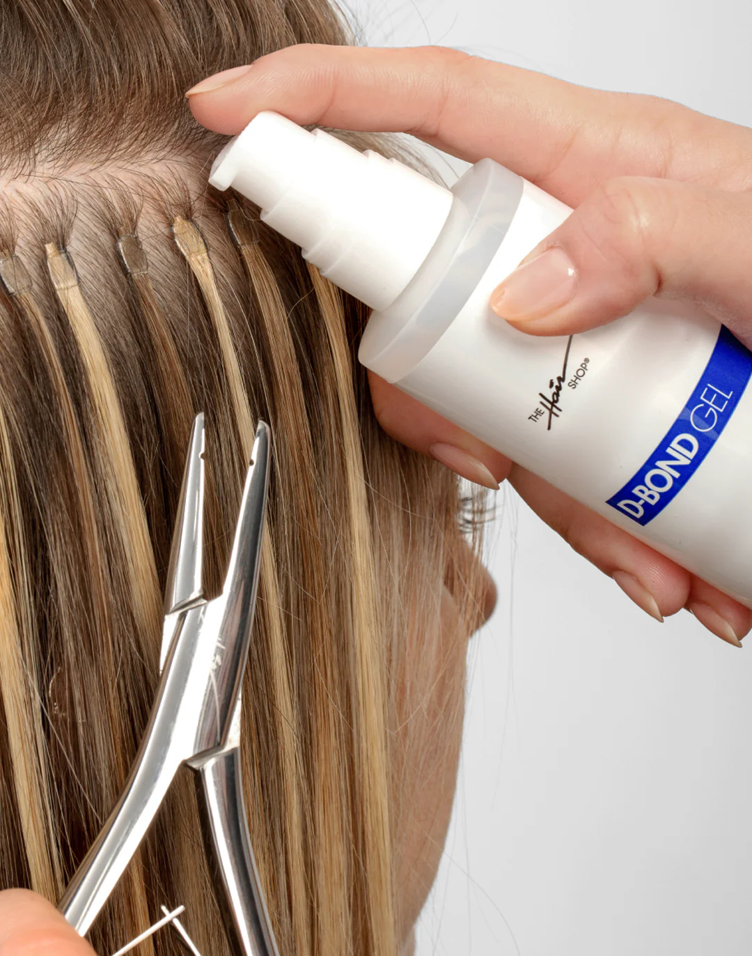 D-Bond Gel is an alcohol-based solution that will quickly and easily dissolve extension bonds and residue leaving hair healthy and strong. Directions: Apply D-Bond Gel to extensions bond and let saturate. For Keratip and Plastic Tube extensions, open bond with flattening pliers.