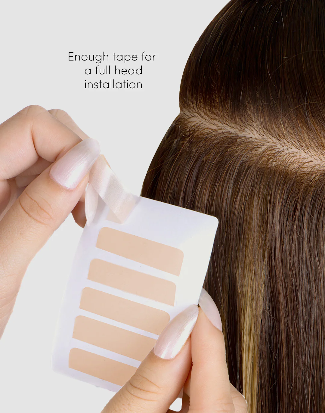 Reusing Tape-In hair extensions has never been any easier! Specially designed for the reuse and reapplication of Smart Tabs® hair extensions. Each piece of tape is pre cut to match the size of Smart Tabs® extensions. To use, simply remove the brown backing form each tape tab, align Smart Tab hair extension tab onto tape piece, and press together. For extra security, firmly press Tape Tab and Smart Tab together with the [Pro Tape-In Press].